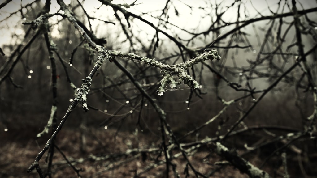The subjects of this exposure are simply large dew drops hanging from many branches. By reflecting the bright cloudy sky, they appear to glow against a dark background. Then throw in a bit of post processing work to alter the color and contrast and the image above is yielded. But if you toss all the technical details aside for a moment and let the mind wander, what will you see?