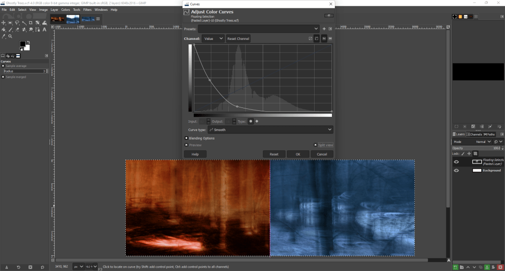 After cropping to 3:1, I went into the color curves adjustment tool of my image editing software and just started moving stuff around. I have GIMP 2.10, a free, open-source, image editor with a lot of powerful tools. I enjoy photography as a hobby, and I don’t see the need to get anything more powerful (and expensive) like photoshop. At least not at this time.